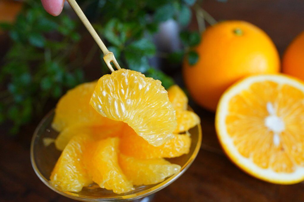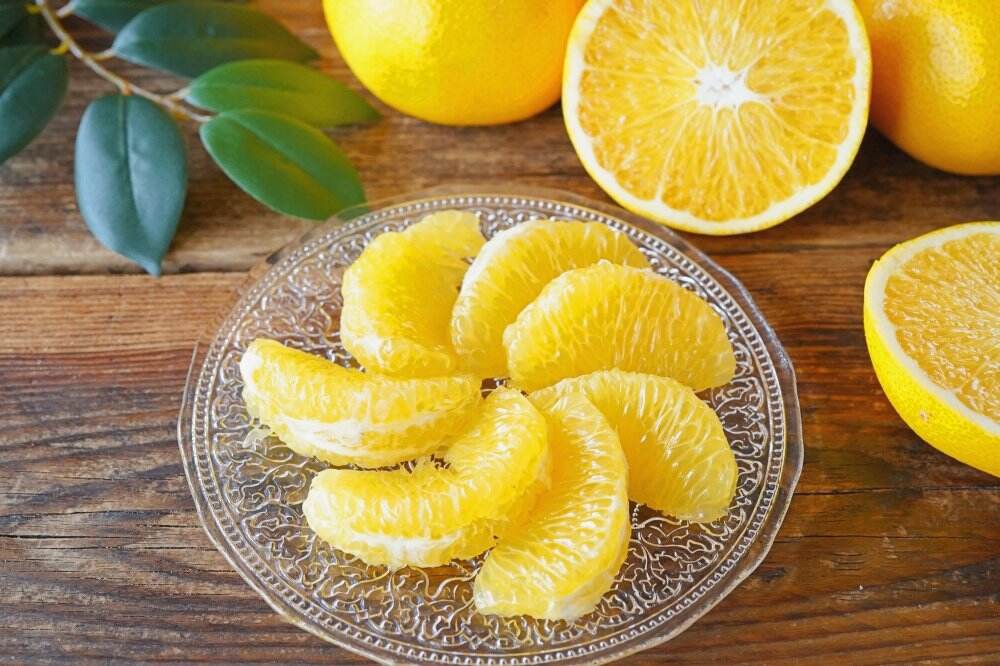 外皮がむきやすく、グレープフルーツのようにみずみずしく、苦味がすくなくジューシーでぷりぷりの食感が特徴。